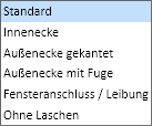 Wird beim Vertikalschnitt für den Anschluss oben der Fensteranschluss gewählt, dann kann der Anschluss auch ohne Laschen eingebaut werden. Dazu geben Sie bei Länge Abkantung einfach den Wert 0 ein.