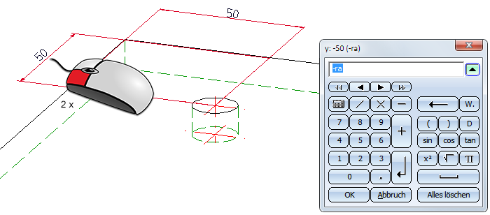 Nehmen wir an, die Platte aus diesem Beispiel gehört zu einer Baugruppe und die Baugruppe soll als Verlegeelement verwendet werden. In diesem Fall müssen die Parameter i_l, i_h, d, max und ra der Baugruppe zugeordnet werden. Dazu klickt man im ICN mit der rechten Maustaste auf den Namen der Baugruppe und wählt im Kontextmenü Eigenschaften > Teilevariablen. Dann klickt man mit der rechten Maustaste in die Variablentabelle, wählt die Funktion Neue Variable hinzufügen und gibt dann den Namen der Variablen und deren Anfangswert ein.