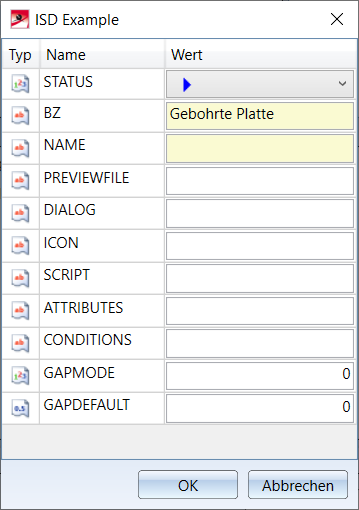 Der im Beispiel abgebildete Dialog lässt sich auch individuell gestalten. Dazu steht Ihnen der HiCAD Dialogeditor zur Verfügung. Ein Beispiel eines individuellen Kataloges finden Sie hier.