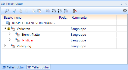 - Aktivieren Sie die Funktion Andockfenster Bauwesen-Funktionen > Elementverlegung > Verbindungsparameter.