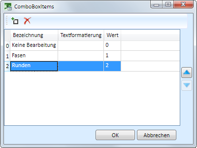 Beim Einfügen neuer Zeilen werden die Einträge in der Spalte Wert automatisch fortlaufend nummeriert.