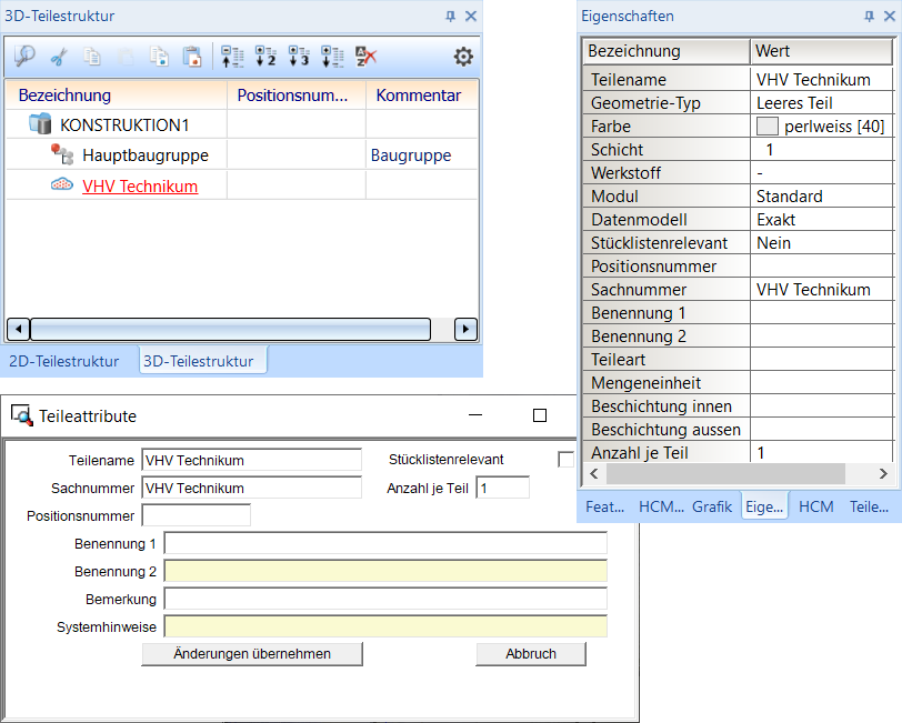 Wie bei anderen Teile lassen sich auch die Teileattribute einer Punktwolke festlegen.