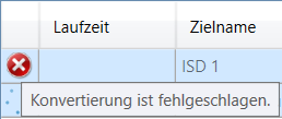 Sie starten die Konvertierung mit einem Klick auf die Schaltfläche Konvertieren. Die Dateien werden dann nacheinander konvertiert. Tritt bei der Konvertierung ein Fehler auf oder ist unter dem Namen bereits eine konvertierte Datei vorhanden, dann die Zeile mit dem Symbol gekennzeichnet. Wenn Sie mit dem Cursor auf das Symbol zeigen, wird eine entsprechende Fehlermeldung angezeigt, z.B.