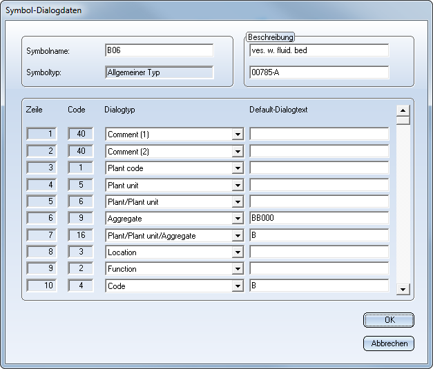 Das Symbol wird nach der Auswahl in den Symboleditor geladen, und die Symbol-Dialogmaske geöffnet. Hier können Sie z.B. den Symbolnamen ändern.
