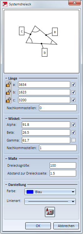 Nach der Identifizierung der Dreiecksseiten, wird das Dialogfenster Systemdreieck angezeigt.