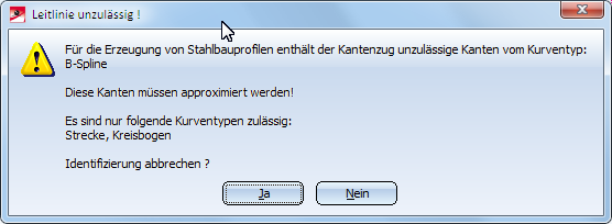 Sie haben dann die Möglichkeit, einen anderen Kantenzug auszuwählen (Nein) oder die Identifizierung abzubrechen(Ja).