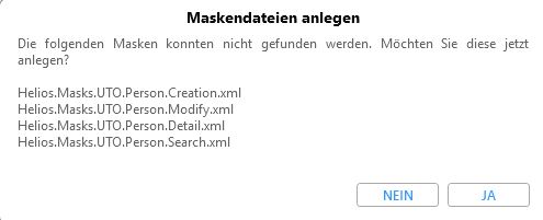 Wurden im Attributeditor neue benutzerdefinierte Objekttypen angelegt, werden Sie nach dem Aufruf bzw. nach einem Neustart des Maskeneditors gefragt, ob für diese neue Maskendateien angelegt werden sollen. Bestätigen Sie die Abfrage mit Ja, um den automatischen Vorgang auszuführen.