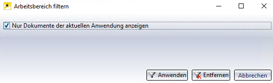 Ist dabei die Checkbox Nur Dokumente der aktuellen Anwendung anzeigen aktiv, werden ausschließlich Dokumente angezeigt, die in der aktuellen Applikation (HELiOS Desktop oder Office) geöffnet sind.