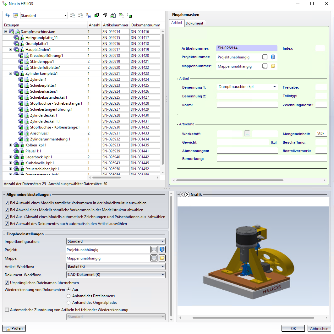Für die Übergabe der CAD-Modellstruktur an die HELiOS Datenbank können Sie über