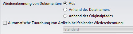 Darunter finden Sie Optionen zur Wiedererkennung von Dokumenten bereits übernommener Dokumente: