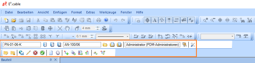 Ein mit HELiOS gekoppeltes Modul von Zuken E3 (z. B. Cable) erscheint nach dem Start mit zwei zusätzlichen Menüleisten, die separat angedockt werden können: