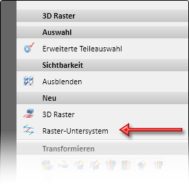 Um ein Raster-Untersystem zu definieren, klicken Sie das Raster mit der rechten Maustaste an. Im anschließend angezeigten Kontextmenü für Raster aktivieren Sie die Funktion Raster-Untersystem.