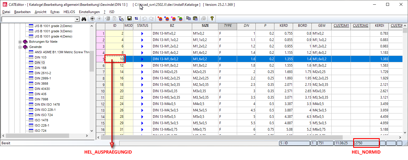 Die Tabellen-ID wird dem HELiOS Artikelattribut HEL_NORMID zugeordnet, die Datensatz ID dem HELiOS Artikelattribut HEL_AUSPRAEGUNGID. Die Attributbenennung ist in beiden Fällen Normteilkennung.