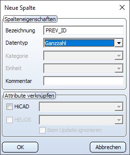 - Sie öffnen die die entsprechende Tabelle im Katalogeditor und fügen - falls noch nicht vorhanden - eine Spalte mit dem Namen PREV_ID ein (Datentyp Ganzzahl).