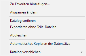 Weitere Funktionen zur Bearbeitung von Katalogen Sie im Kontextmenü für Kataloge, das Sie durch einen Klick mit der rechten Maustaste auf einen Katalognamen aktivieren.