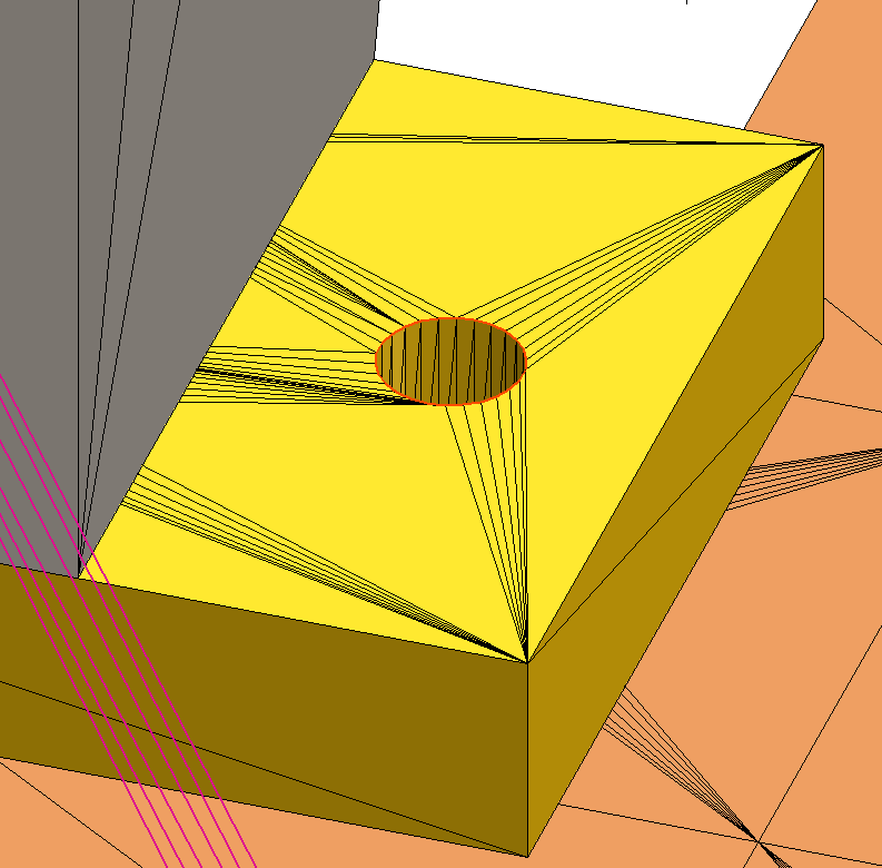Die Ausnehmung liegt auf der Quaderkante. Wird die Kante der Ausnehmung ausgewählt, dann lässt sich keine eindeutige Fortsetzung der Kante ermitteln. |