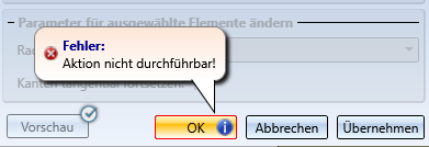 - Unter Parameter für ausgewählte Elemente ändern haben Sie die Möglichkeit, verschiedene Parameter für alle in der Liste der Fasenelemente markierten Elemente in einem Schritt zu ändern.