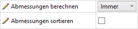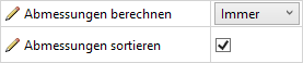 Durch Aktivierung dieser Checkbox lassen sich die Abmessungen den Attributen Länge, Breite, Höhe nach Größe sortiert zuordnen. Das heißt, der größte Wert wird der Länge zugeordnet, der kleinste der Höhe. Defaultmäßig ist die Checkbox inaktiv. Das Einschalten der Sortierung wirkt sich erst nach einem Neustart von HiCAD aus.