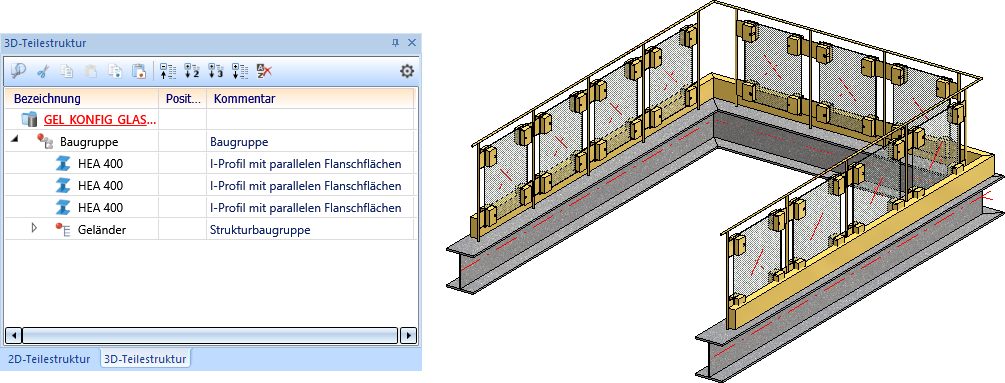 Wird die Strukturbaugruppe Geländer ausgewählt, dann wird keine Abmessungsberechnung durchgeführt.