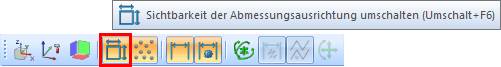 Die Abmessungsdarstellung lässt sich mit der Tastenkombination UMSCH+F6 (Shift+F6) ein-/ausblenden. Dies ist die ISD-seitige Defaulteinstellung. Ist diese Einstellung aktiv, dann lässt sich das Ein-/Ausschalten der Abmessungsdarstellung auch über die Symbolleiste Sichtbarkeit, unten in der HiCAD Oberfläche. Andernfalls ist das Synbol gesperrt.