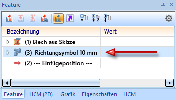 Um eine Richtungssymbol zu entfernen, löschen Sie den entsprechenden Eintrag im Feature-Protokoll.