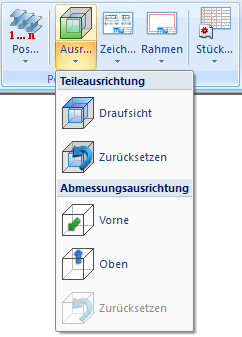 Darüber hinaus ist die Darstellung der Teileausrichtung erweitert worden. Ist die Darstellung der Ausrichtung aktiv, dann wird die Ausrichtung am Teil durch einen Raumwürfel und ein zusätzliches Symbol für die Quelle der Ausrichtung gekennzeichnet.