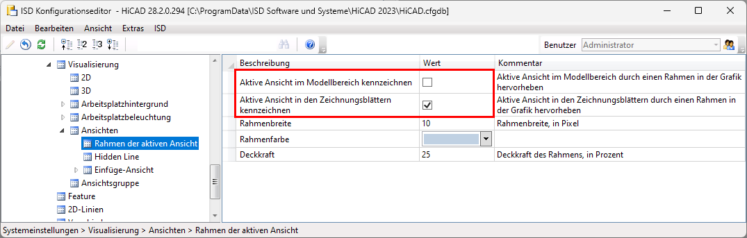 - Aktive Ansicht in den Zeichnungsblättern kennzeichnen