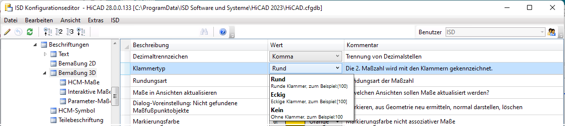 Die 2. Maßzahl wurde bisher immer mit runden Klammern gekennzeichnet. Ab HiCAD 2023 lässt sich der Klammertyp wählen: