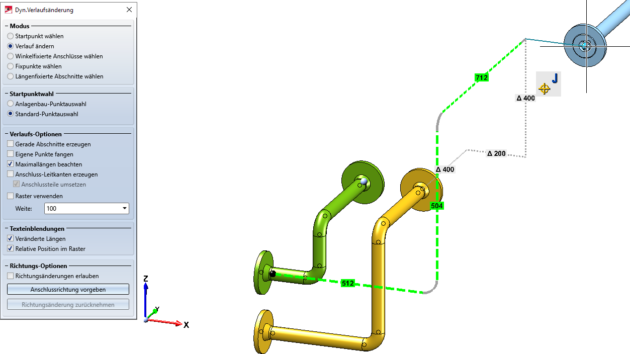 Anlagenbau > Rohrleitungs-Tools > Änd... > Verlauf ändern