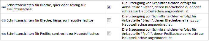 Ist im Dialogfenster Ansichten für Baugruppen die Checkbox Schnittansichten aktiv, dann lässt sich hier festlegen, ob auch Schnittansichten für Anbauteile erzeugt werden sollen. Möglich ist dies für