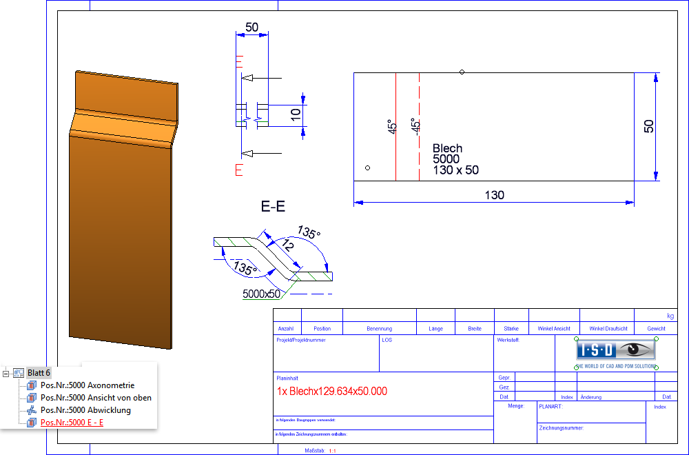 - Mengenliste in Zeichnungsrahmen, wenn nur eine Ansichtsgruppe / Strukturliste in Zeichnungsrahmen, wenn nur eine Ansichtsgruppe