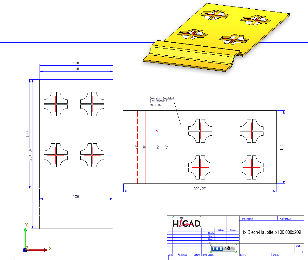 Auch die Abwicklungssansichten von Kantblechen lassen sich verkürzt darstellen. Die ISD-seitige Voreinstellung ist unverkürzt. - Anderen Ansichten verkürzt darstellen