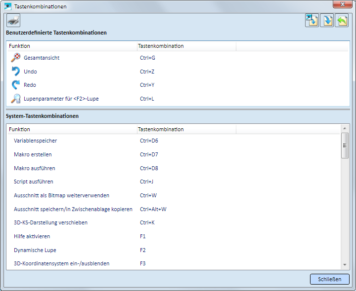 Die System-Tastenkombinationen können nicht geändert werden.