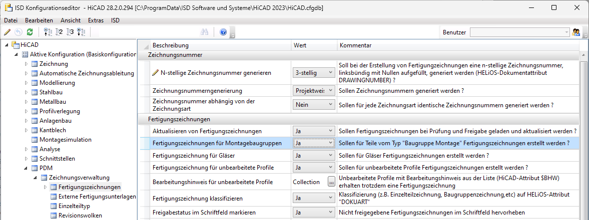 Montagebaugruppen (Typ Baugruppe Montage) lassen sich jetzt bei Bedarf von der Erstellung der Fertigungszeichnungen ausnehmen. Dazu steht im Konfigurationsmanagement unter PDM > Zeichnungsverwaltung > Fertigungszeichnungen der neue Parameter Fertigungszeichnungen für Montagebaugruppen zur Verfügung. Die ISD-seitige Voreinstellung ist Ja.