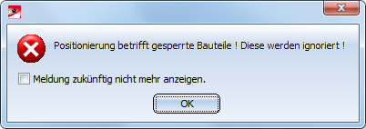 Ist heir beispielsweise Nein gewählt, dann werden bei der Positionierung alle freigegebenen Bauteile ignoriert und es erscheint die Meldung: