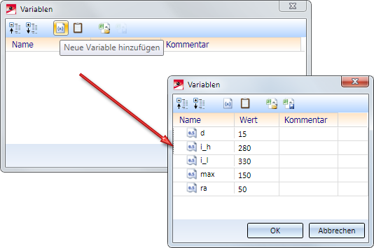 - Doppelklicken Sie auf das Maß 280, geben Sie als Variable i_h ein und als Anfangswert 280.