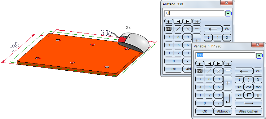 - Doppelklicken Sie auf das Maß 330, geben Sie als Variable i_l ein und als Anfangswert 330.
