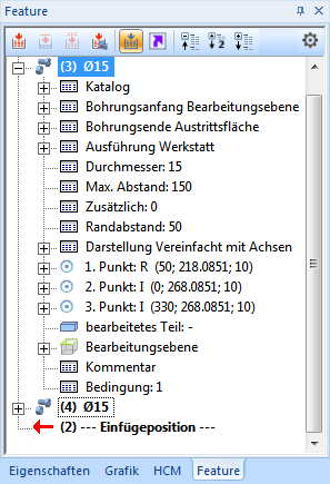 - Öffnen Sie das erste Feature (3) ∅ 15 .