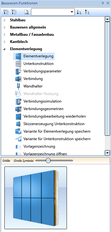 Sie finden die Funktion im Andockfenster Bauwesen-Funktionen in der Kategorie Elementverlegung.