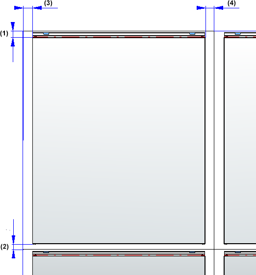 Fugenbreite: (1) oben, (2) unten, (3) links, (4) rechts Bei ALUCOBOND SZ20 Kassetten mit Zubehör bezieht sich dier Fugenbereite immer auf die Kassette.