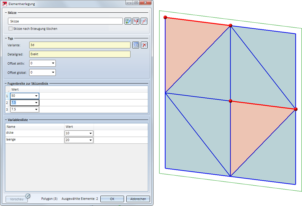- Verlegen von polygonförmigen Verlegeelementen auf polygonförmigen Skizzenbereichen.