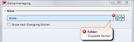 Enthält die gewählte Skizze doppelte Kanten, dann wird dies im Dialogfenster durch das Symbol