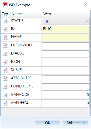 Ist die Checkbox Dialogeditor starten aktiv, dann wird beim Verlassen des Fensters mit OK direkt automatisch der HiCAD Dialogeditor gestartet und automatisch die CSV-Datei mit den Variablen geladen. Sie können dann direkt mit der Erstellung des Dialoges beginnen. Das ISDGUI-Archiv wird beim Speichern des Dialoges automatisch im selben Ordner wir die CSV-Datei abgelegt.