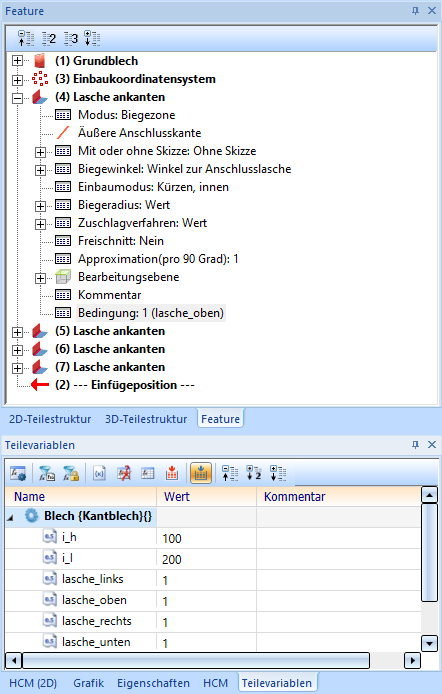 Der erste Block legt fest, dass VORLAGENZEICHNUNG_LASCHE_OBEN_LINKS.SZA verwendet werden soll, wenn sowohl lasche_oben als auch lasche_links den Wert 1 haben.