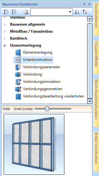 Um ein flüssigeres Arbeiten bei großen Unterkonstruktionen zu ermöglichen, können Sie das Häkchen entfernen. Dann wird eine Vorschau nur noch nach einem expliziten Klick auf den Button Vorschau erzeugt, aber nicht mehr automatisch.