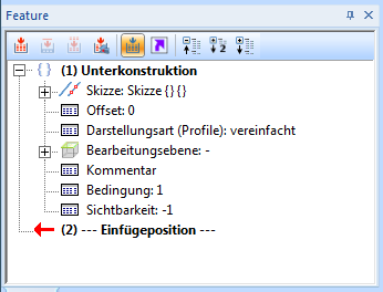 Diese Baugruppe enthält das Feature Unterkonstruktion. Nach einem Doppelklick auf dieses erscheint das Dialogfenster Unterkonstruktion und ermöglicht es so, diese Unterkonstruktion zu ändern.