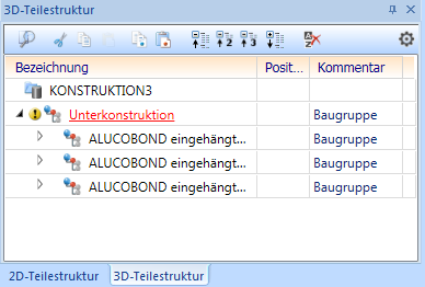 Die erzeugten Profile werden einer neuen Baugruppe mit dem Namen Unterkonstruktion untergeordnet.