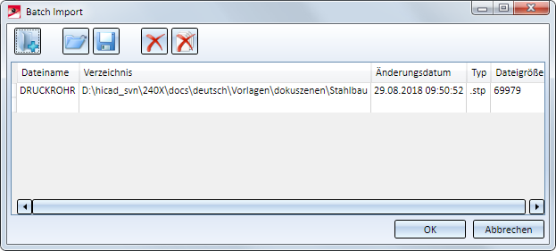 Konstruktion > Öffnen > Batch Import (Dialog)