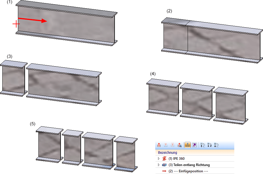 Stahlbau > Verlängern > Teilen