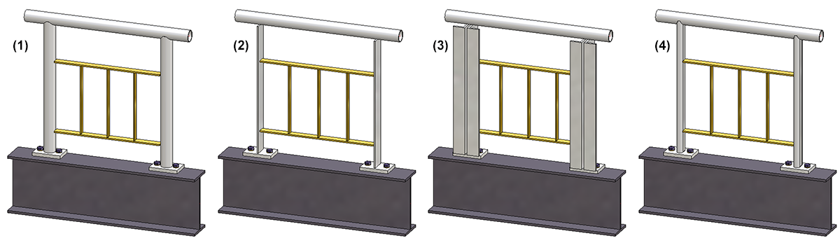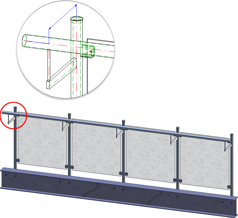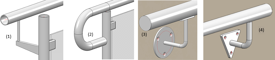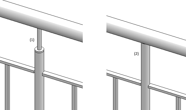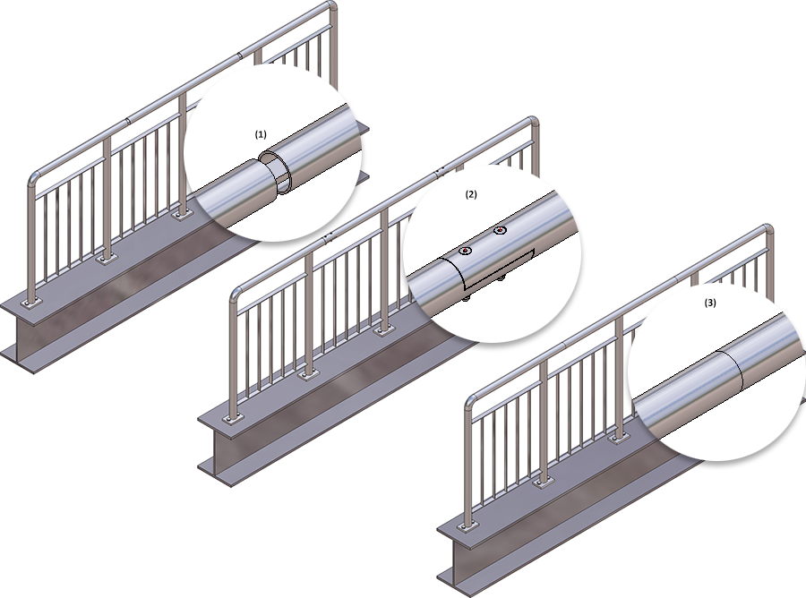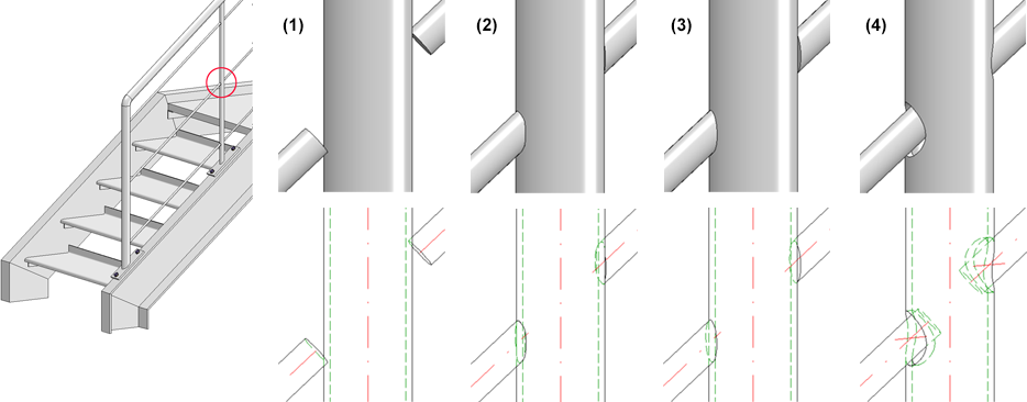 Beispiel 2 - Verbindung Zwischenpfosten-Handlauf: 1) Verbindung mit Dorn, (2) Rohre anschneiden